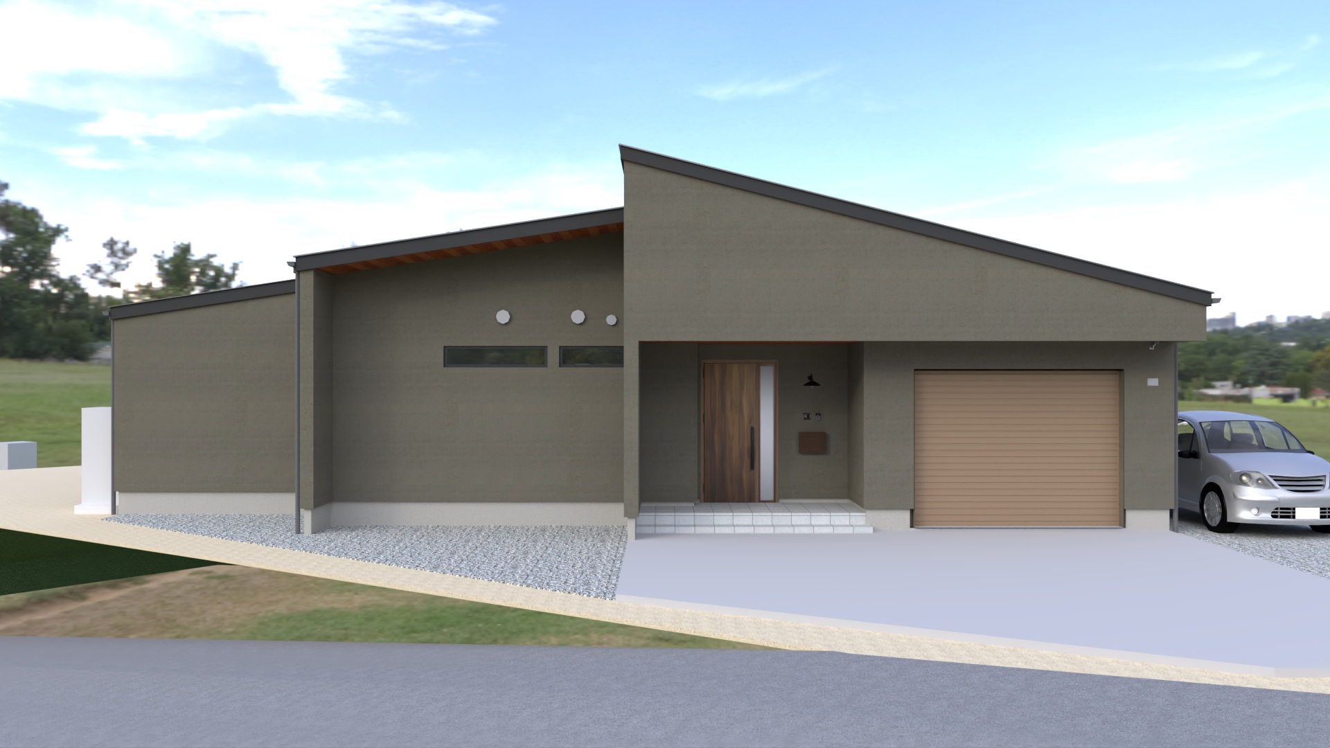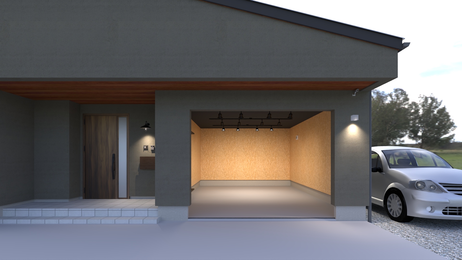 玄関は深い軒の奥にあり、雨に濡れることなく傘をさしたり畳んだりできます。SUMIKA Labのロゴマークをそのまま形にしたような外観は、僕たちもお客様もお気に入り。