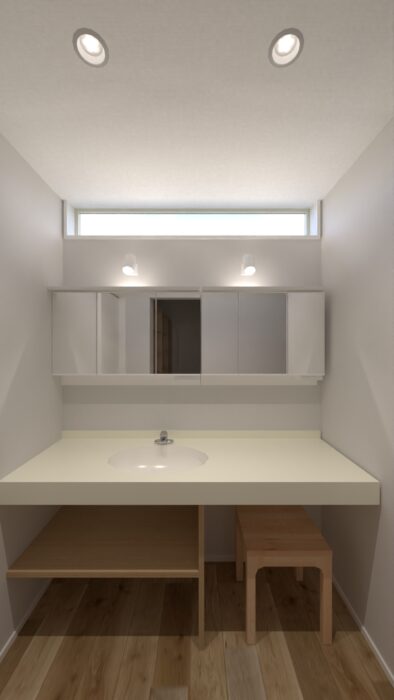 ・奥様こだわりのアイカの半造作洗面台は、白を基調に壁面はタイル張りでオシャレな空間に