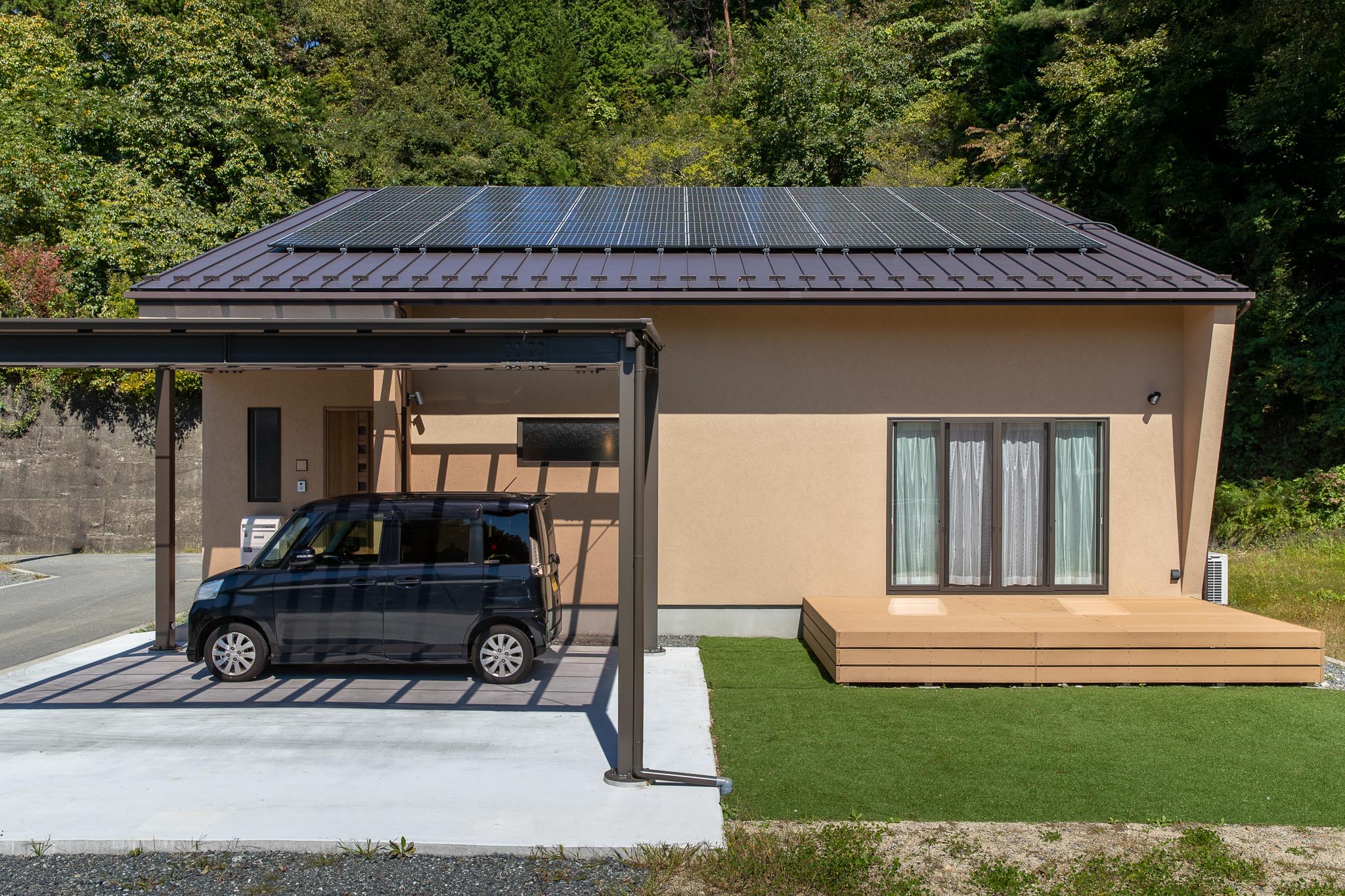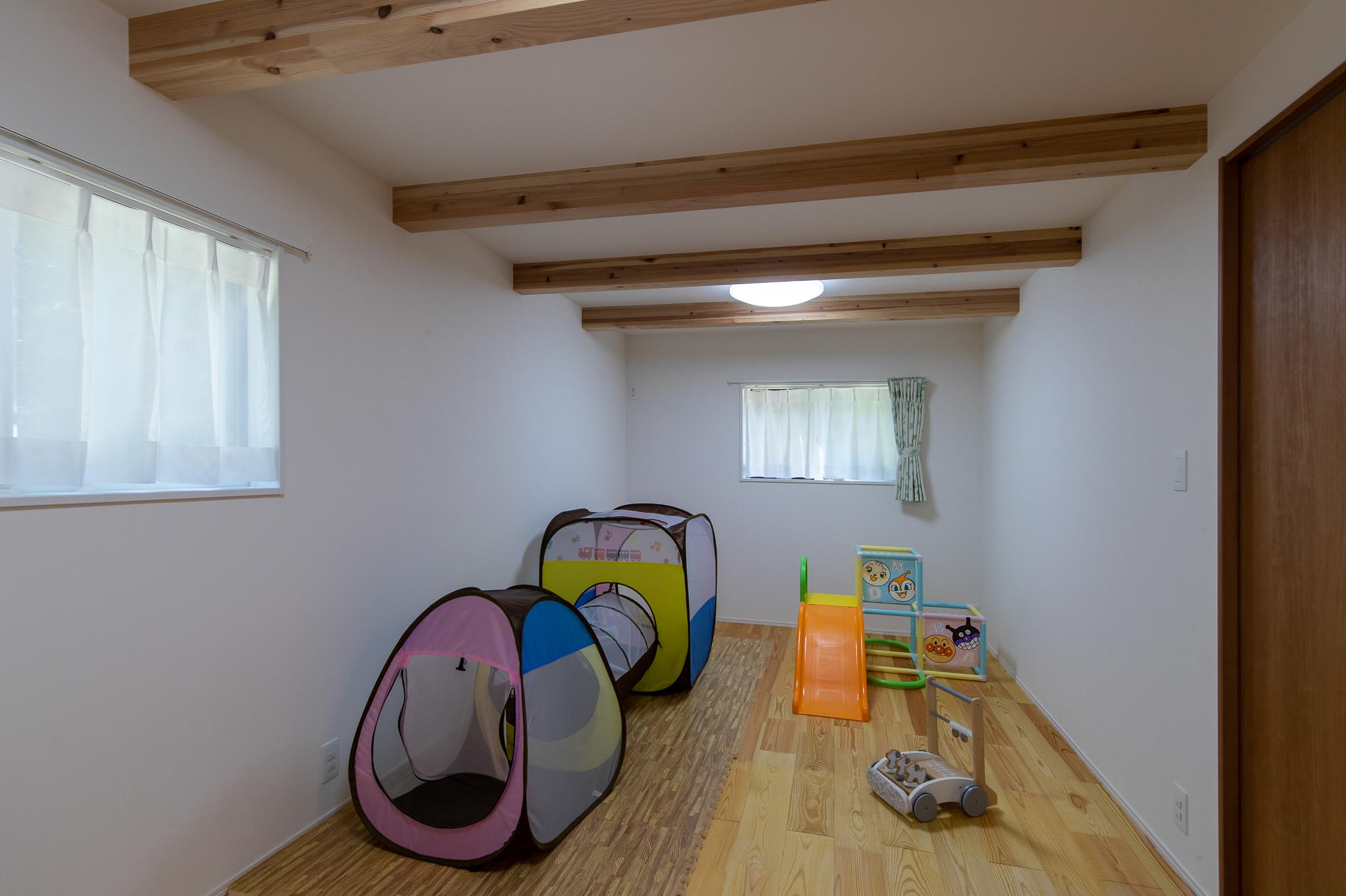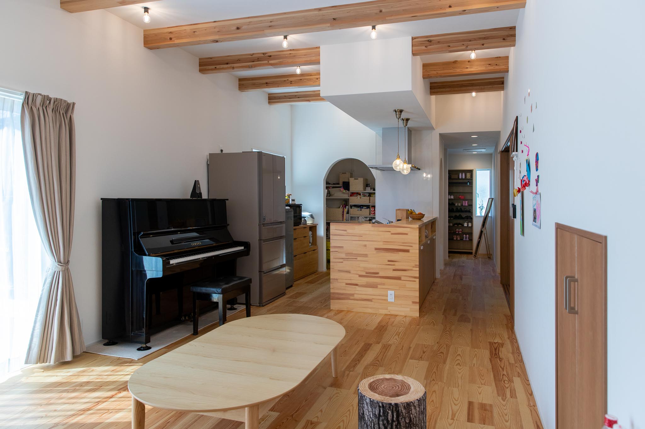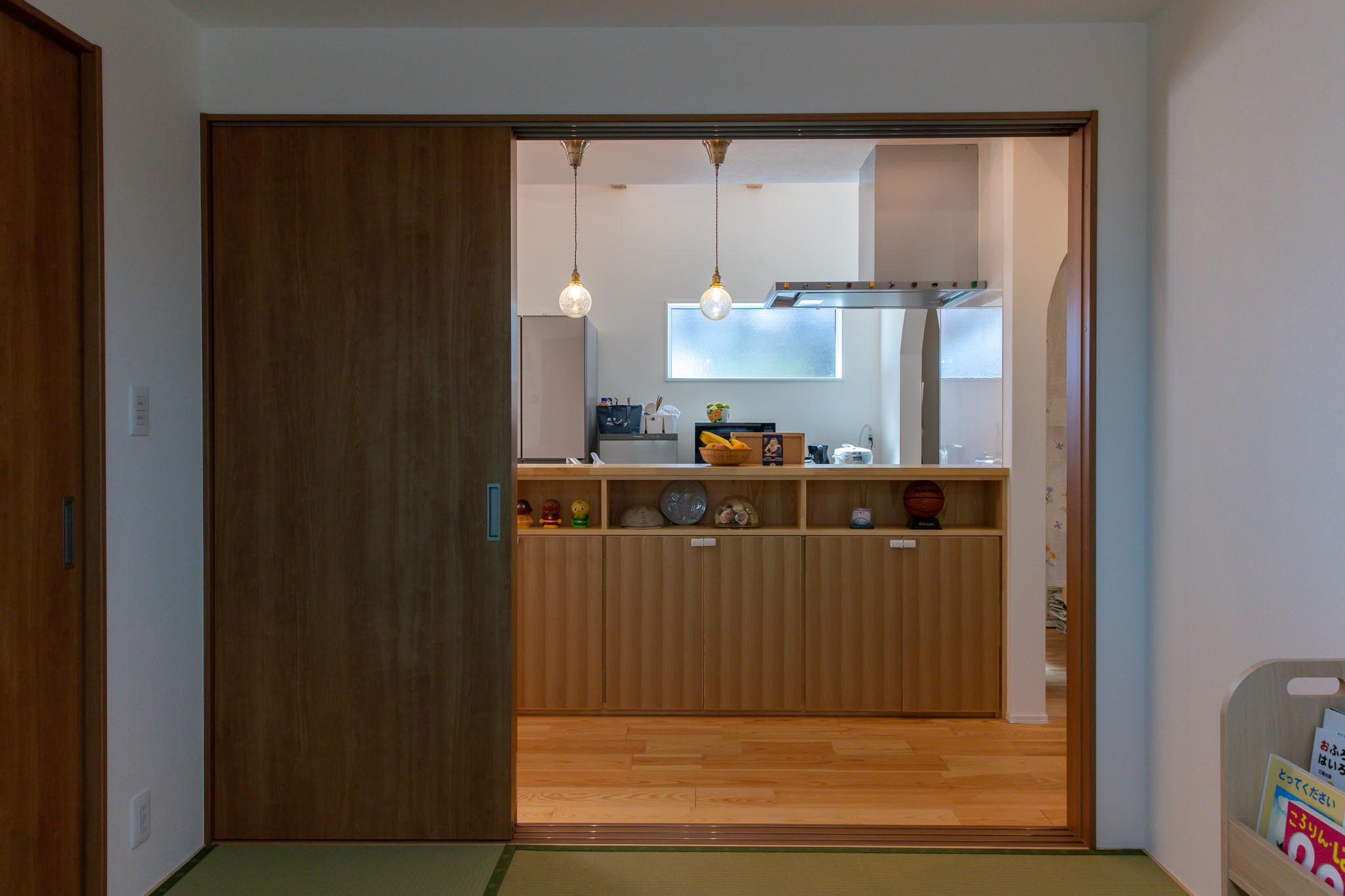 特徴的な形状10kw以上の「建て得」太陽光発電。 軒の深い玄関収納力抜群のシューズクローゼット天井高3.0mの開放的なLDKキッチンの上だけ天井を下げてアクセントに造作のキッチンカウンター兼収納将来家族の変化に合わせて使いやすい1階和室トイレ ← 洗面 → 脱衣 無駄のない動線計画 暗くなりやすい階段室に大きなFIX窓2階は天井高さが2.15m。少し低いけど実用上は問題なし