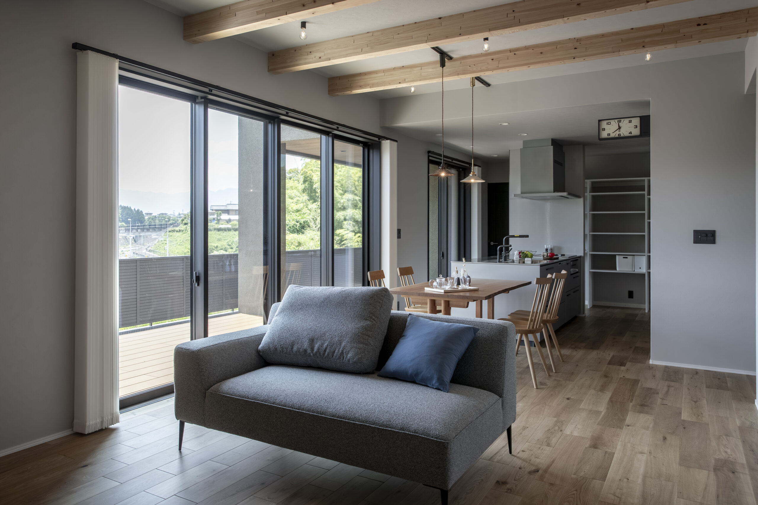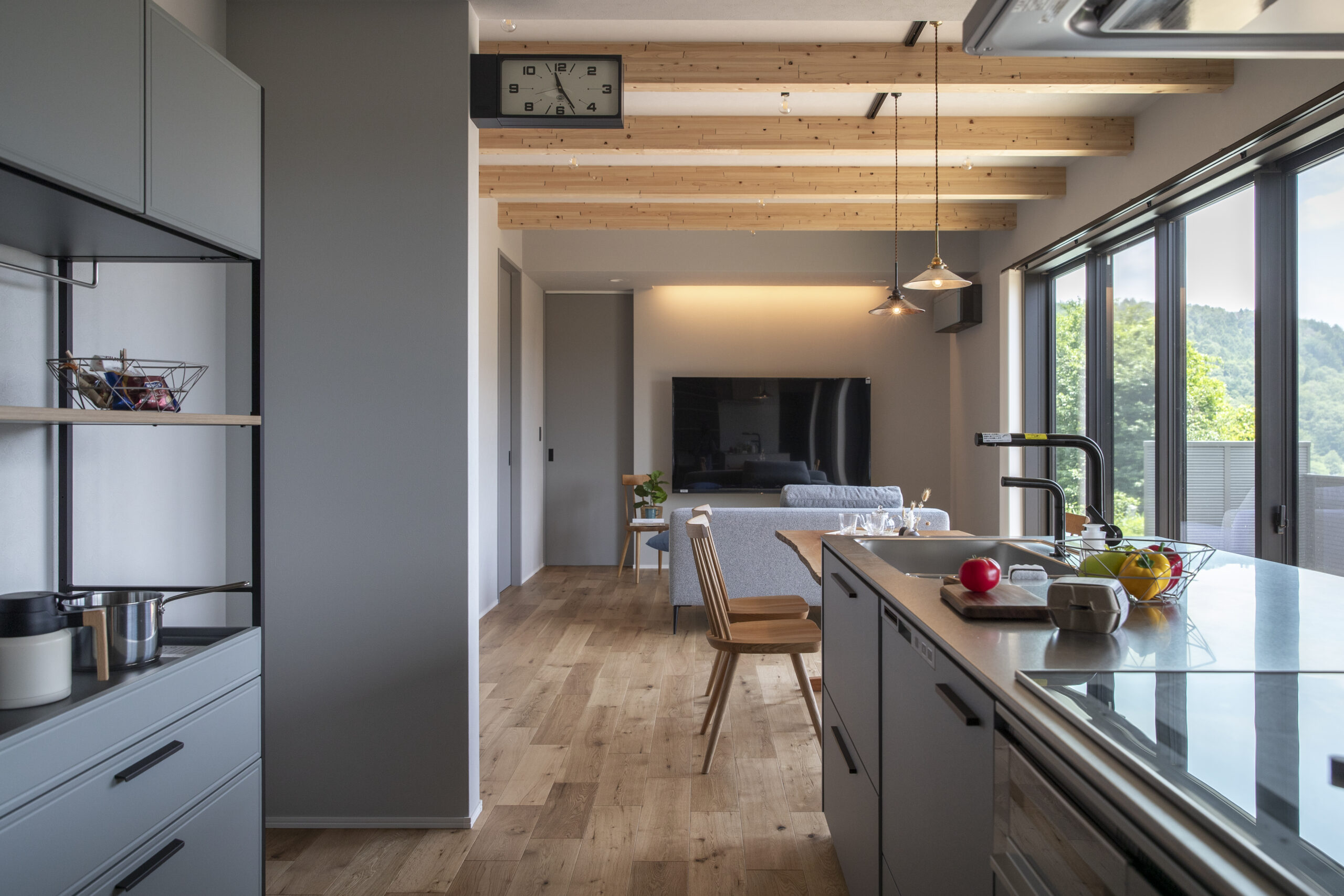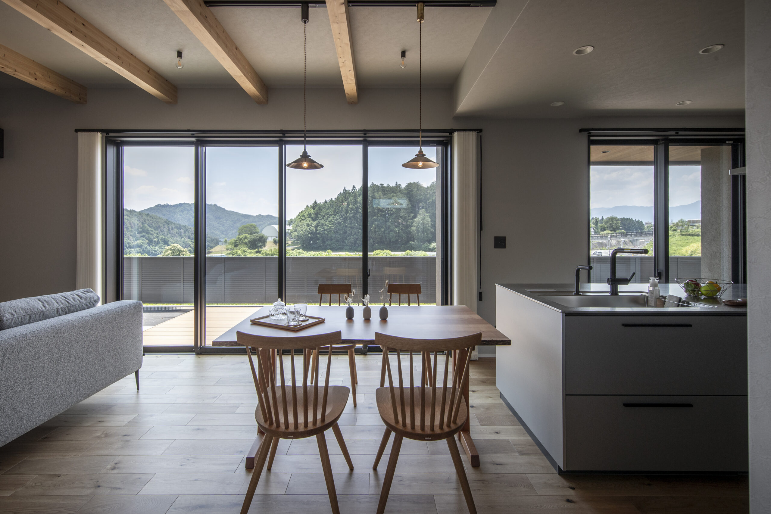 大きな窓の景色、ととのう平屋の家(飯田市)