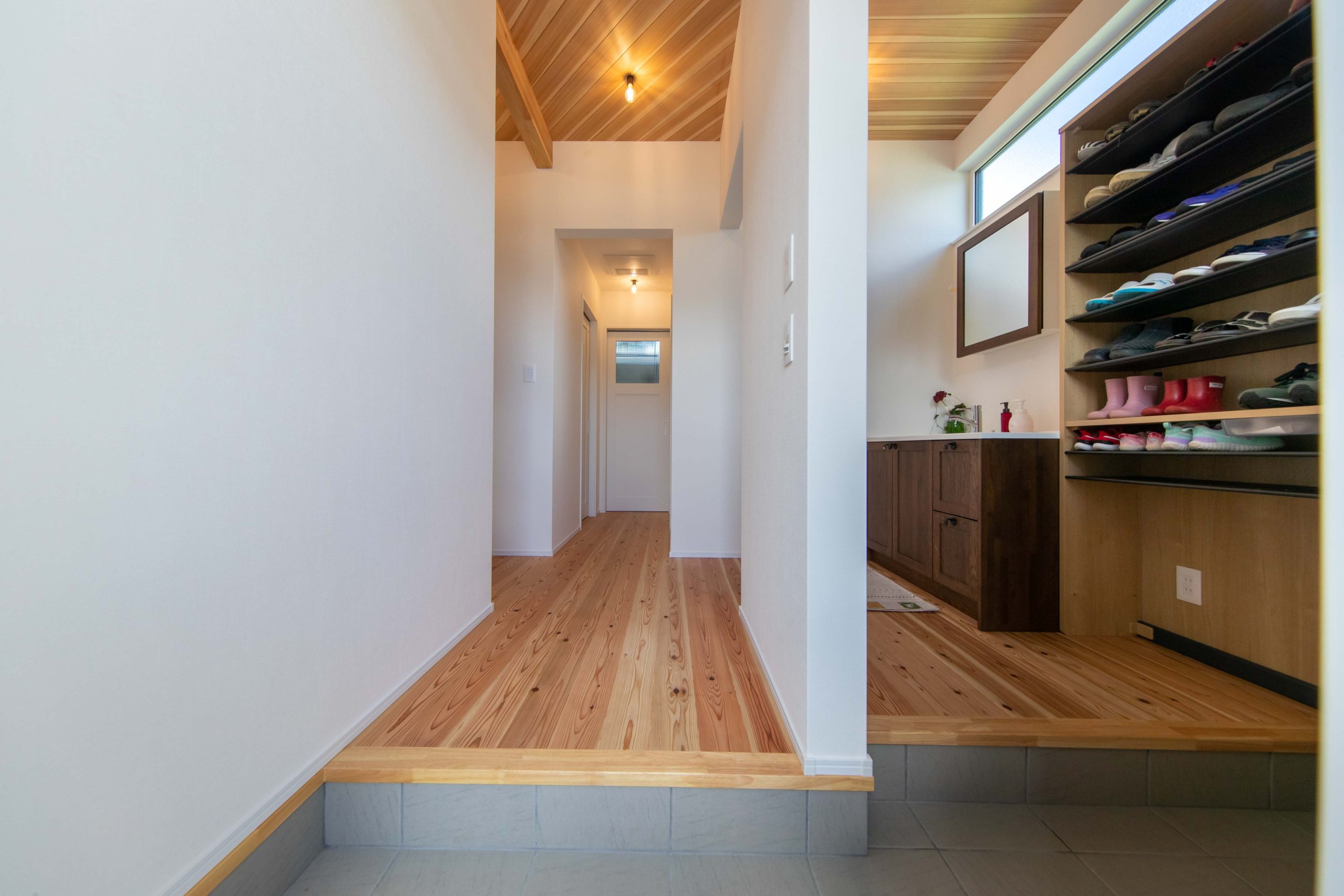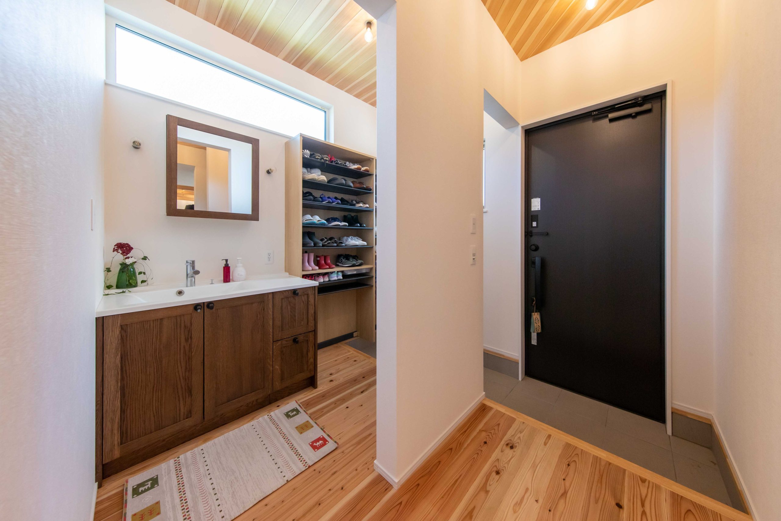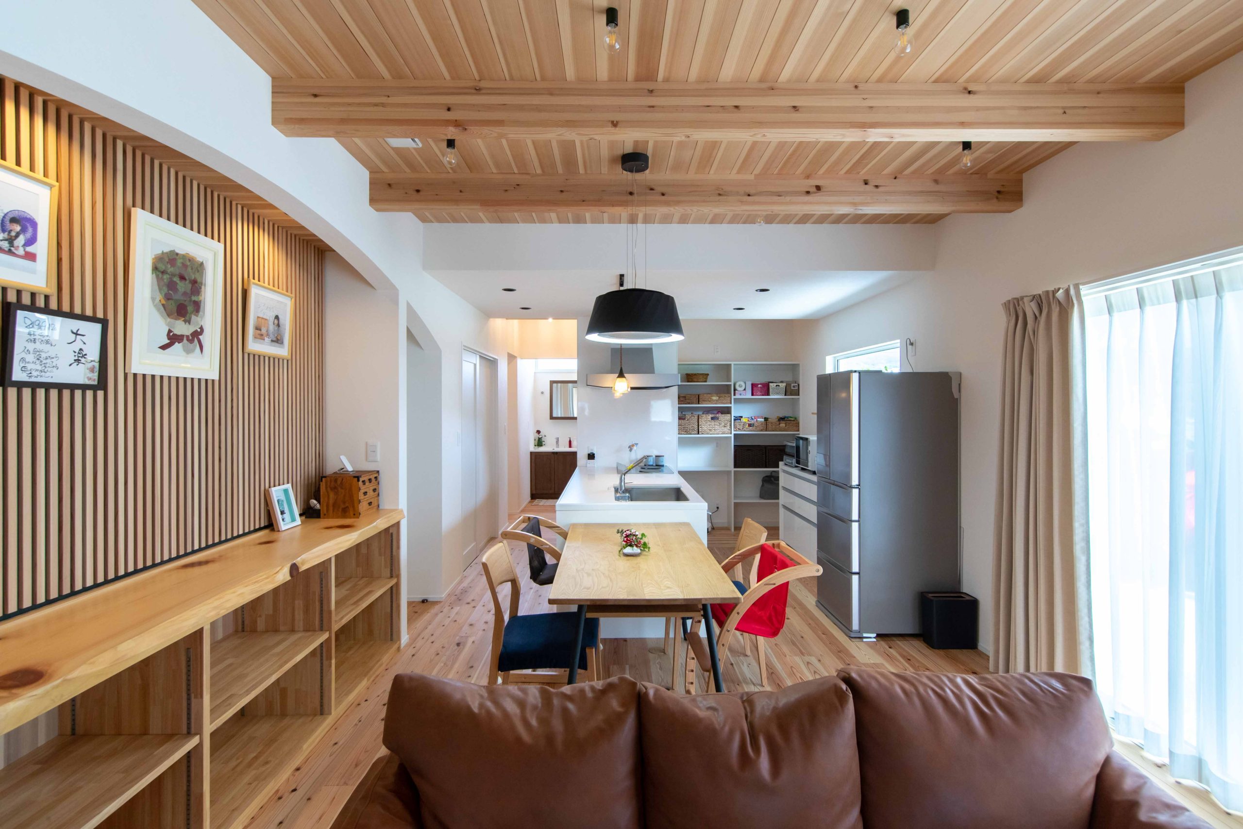 外壁:エコサーム 床面積:25~30坪 床:杉無垢板 キッチン:TOTOミッテ UB:TOTOサザナ サッシ:エルスターS(ガス入樹脂スペーサー) UA値:0.35以下