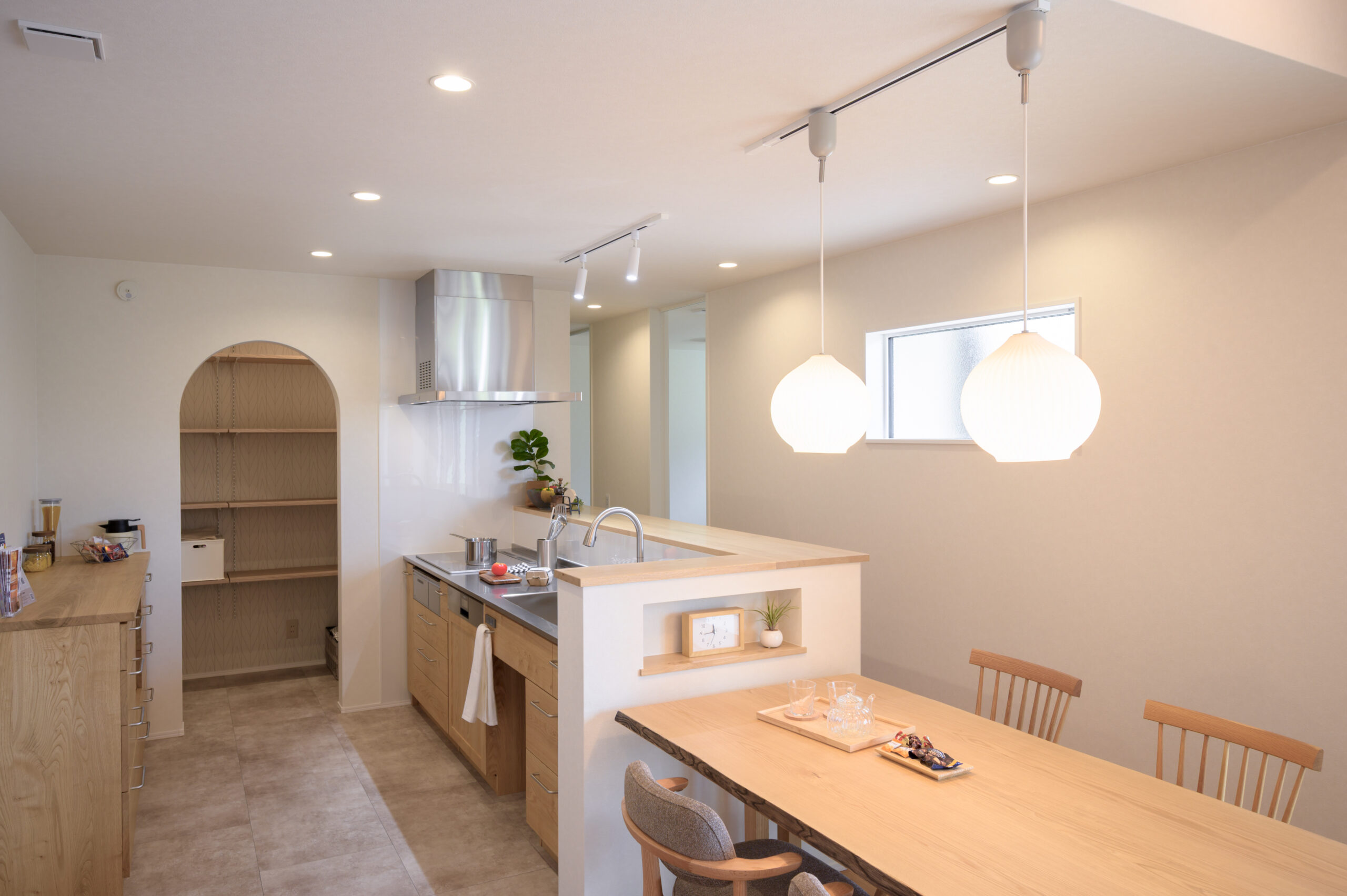 パントリーは、可愛らしいアーチ開口を出入口に採用しました。