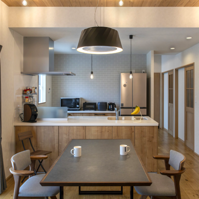 | ペニンシュラキッチン | 多少狭いスペースでも設置可能 | 開放感が落ちる 片側からしか移動できない場合、使い勝手に難を感じることがある |