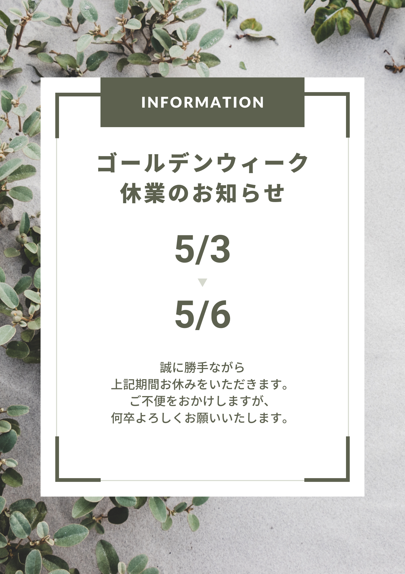 誠に勝手ながら下記の期間をゴールデンウィーク休業とさせていただきます。